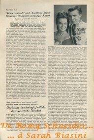 Romy, délicieuse de fraîcheur, porte idéalement perruques et crinolines. Elle semble faite pour incarner ces frêles héroïnes du XIXe siècle. "Tu vas faire rêver toutes les jeunes filles d’Allemagne", lui glisse son metteur en scène. Nouveau triomphe. À 17 ans, Romy Schneider est une star. Mais Ernst Marischka a une autre idée en tête. Ce sera Sissi !