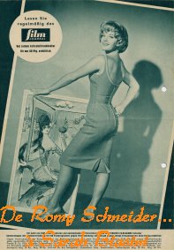 “Carnets intimes de jeune fille”, film autrichien en couleurs n’offrirait que peu d’intérêt si Romy Schneider n’y apparaissait sous un nouvel éclairage. C’est l’histoire d’une demoiselle qui, poussée par des parents abusifs, écrit une pièce polissonne ets’applique, pour donner le change, à jouer les dévergondées. On y voit romy danser le rock’n’roll et découvrir impudiquement son genou.