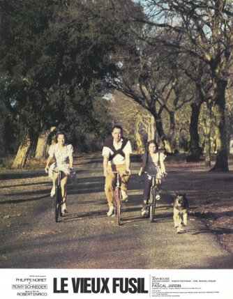 "Le Vieux fusil" commence d’une façon très singulière et légère. En décalage avec son contenu ultérieur marqué par sa brutalité. L'image de cette famille à vélo, semblant si heureuse, fait oublier le destin funeste et le drame abject qui va se jouer. Sublimée par la douce et entêtante musique de François de Roubaix, cette scène, qui débute et clôt ce film, est mémorable.