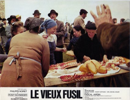 La première partie du "Vieux Fusil" est touchante. Elle introduit subtilement ces deux personnages et la véritable quintessence de leur relation si forte. On est tout de suite emporté par un tourbillon sentimental. Robert Enrico filme, avec maîtrise, cette osmose et cette alchimie qui transparaissent avec évidence à l’écran. Cette vision de cette famille joyeuse et drôle ne peut qu’éveiller notre sensibilité et notre humanité. Toutefois, malgré ces instants harmonieux, "Le Vieux Fusil" ne tarde pas à distiller des éléments évoquant le climat de suspicion et de terreur lié à l'occupation. Des pendaisons, la présence des miliciens, etc. Le cinéaste joue sur deux tableaux et prépare un développement beaucoup plus sombre et glauque.