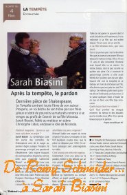 Article intérieur : * Sarah Biasini : "La complicité avec Romy me manque" 8 pages |