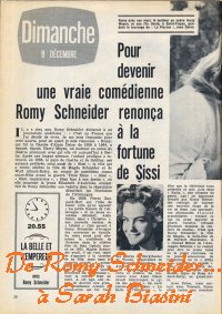 Article intérieur :* Pour devenir une vraie comédienne, Romy Schneider renonça à la fortune de "Sissi"