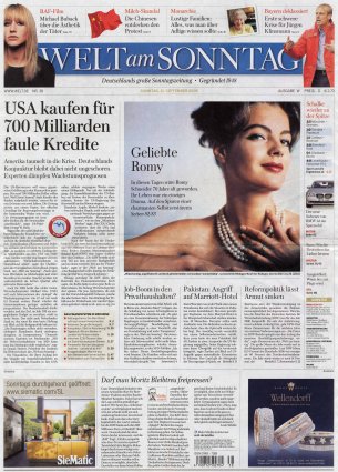 Um 22.30 Uhr schließt sich der Dokumentarfilm "Romy Schneider - Eine Frau in drei Noten" von Frederick Baker an, der sich um Segen und Fluch des Star-Daseins dreht, um Schneiders fast manisches Streben nach Vollkommenheit. Wie sehr das Leben (und Sterben) der Schauspielerin die Menschen noch immer fasziniert, zeigen nicht zuletzt zwei Filmprojekte, die Romy Schneider wiederauferstehen lassen wollen: Seit September laufen die Dreharbeiten für einen TV-Film, in dem Jessica Schwarz die Hauptrolle spielt; Anfang 2009 soll der Kinofilm "Eine Frau wie Romy" mit Yvonne Catterfeld entstehen. Es fällt schwer zu glauben, dass Romy Schneider tot ist. Gerade in diesen Tagen scheint sie allgegenwärtig.