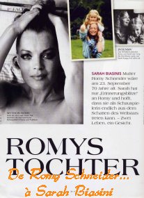 Les biopics se suivent et ne se ressemblent pas… Après Sagan, Piaf, Coluche et en attendant Gainsbourg et deux films sur la vie de Coco Chanel, on prépare un long-métrage sur Romy Schneider. Coproduction franco-allemande, le film qui doit être tourné en mars 2009 sera financé pour la France par Raymond Danon et réalisé par le metteur en scène germanique Josef Rusnack. Il racontera les grandes lignes de la vie privée et de la carrière de l'actrice, des premiers Sissi à sa disparition tragique en 1982.