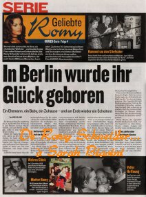 Die 23-Mio.-Ko-Produktion „Eine Frau wie Romy“ startet am 23. Juli in Paris (61 Drehtage, z. B. Berlin, Bayern, Venedig etc.). Ein neuer „Alain Delon“ wird noch gesucht. Romy-Intimus Michel Piccoli (82) hat schon zugesagt und verspricht: „Der Mythos soll nicht zerstört werden.“