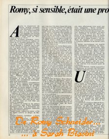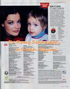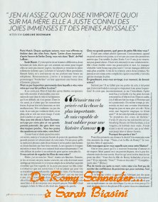 Article intérieur : * Sarah Biasini : "La complicité avec Romy me manque" 8 pages |