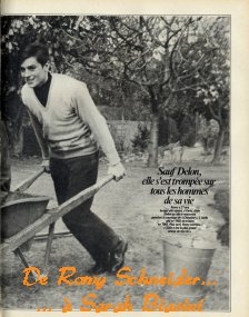 Il existe un petit film d’actualité de juillet 1968, Delon venant chercher Romy à l’aéroport de Toulon, comme naguère il était venu l’accueillir à Orly, débutant poussé par les producteurs avec un gros bouquet de roses rouges (elle l’avait trouvé risible) ; là non, c’est la revanche du "Félin" devenu superstar qui vient repêcher sa poupée. Vêtu d’une chemise noire et d’un blouson de vinyle noir, les cheveux noirs, il est sublime, s’est fait celui que Romy désirait être. Dans cette séquence, l’essence démoniaque des deux êtres est interchangeable. Voilà l’androgyne ! Androgyne Romy ? On se surprend à se demander ce que cette partisane de l’avortement aurait pensé de la PMA pour femme seule. Du mal sûrement, car elle prenait volontiers le parti des hommes, malgré des déceptions nombreuses dans ce domaine. On en a fait récemment à Cannes une "icône" du féminisme selon le terme consacré, erreur historique d’un monde du cinéma devenu si puritain et moral en comparaison de celui d’il y a quarante ans.