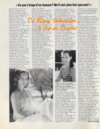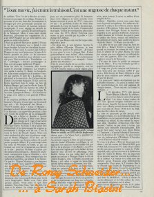 Je te regarde dormir. Wolfie, ton frère, et Laurent entrent dans la chambre. Je parle avec Wolfie. Nous nous souvenons de cette maison que j'avais, à la campagne. Des dobermans qui te faisaient si peur. Nous nous en souvenons encore... C'était il y a vingt-cinq ans, en Bavière, dans un petit village. Wolfie avait quatorze ans, moi vingt-trois et toi vingt. Nous avons ri quand on nous a annoncé la visite de la présidente du Fan Club Romy Schneider en France. Nous avons vu arriver une grande jeune fille, avec des lunettes, timide, et qui s'appelait Bernadette. Quand nous sommes revenus à Paris, nous lui avons téléphoné. Elle est devenue notre secrétaire, pendant six ans. Elle est toujours la mienne, depuis vingt-deux ans maintenant.