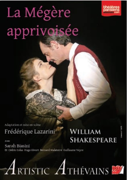 Sarah Biasini est une Catarina au visage grognon et colérique qui se transforme en femme modèle conventionnelle, douce, jolie, souriante. Elle est aussi convaincante sous les deux aspects. Cédric Colas incarne Petruchio, le macho type, qui arrive en blouson de cuir sur marcel blanc, avec son tandem, pour emmener Catarina. La pièce avance avec un rythme rapide. Maxime Lombard fait penser à Raimu dans le personnage du père et Guillaume Veyre excelle en valet malmené.